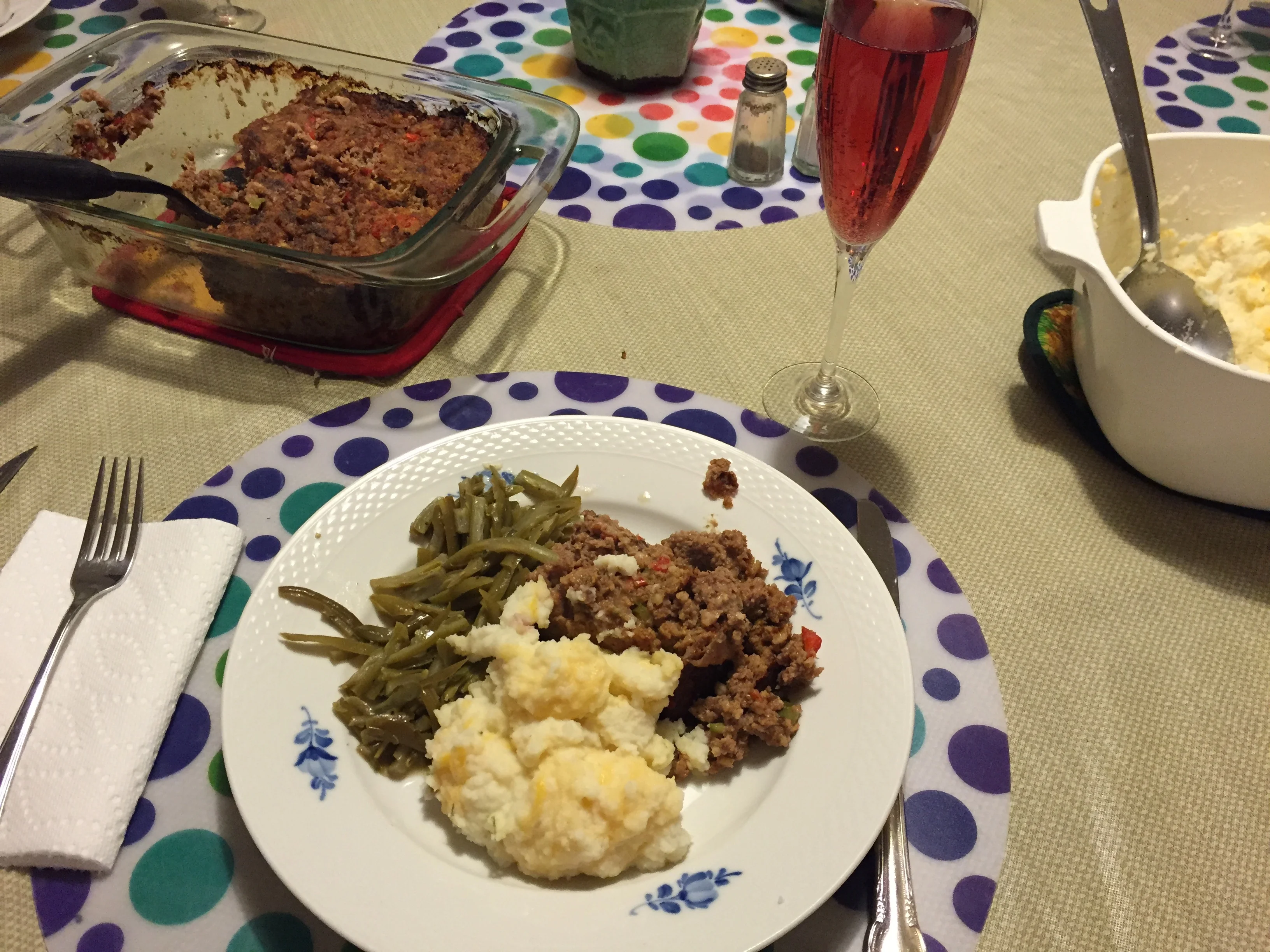 Not only was Rachel there waiting to greet us, but she stayed over and made us a delicious dinner, of home made meatloaf, garlic mashed potatoes, green beans, and even wine.