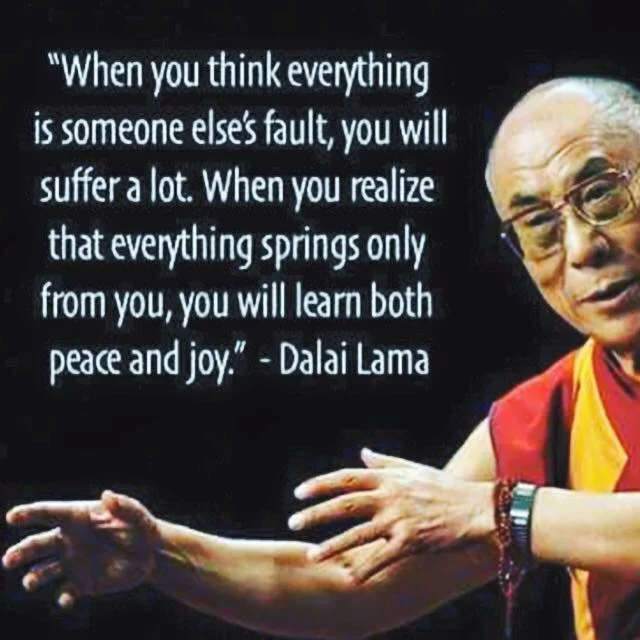 "When you think everything is someone else's fault, you will suffer a lot. When you realize that everything springs only from you, you will learn both peace and joy." -- Dalai Lama