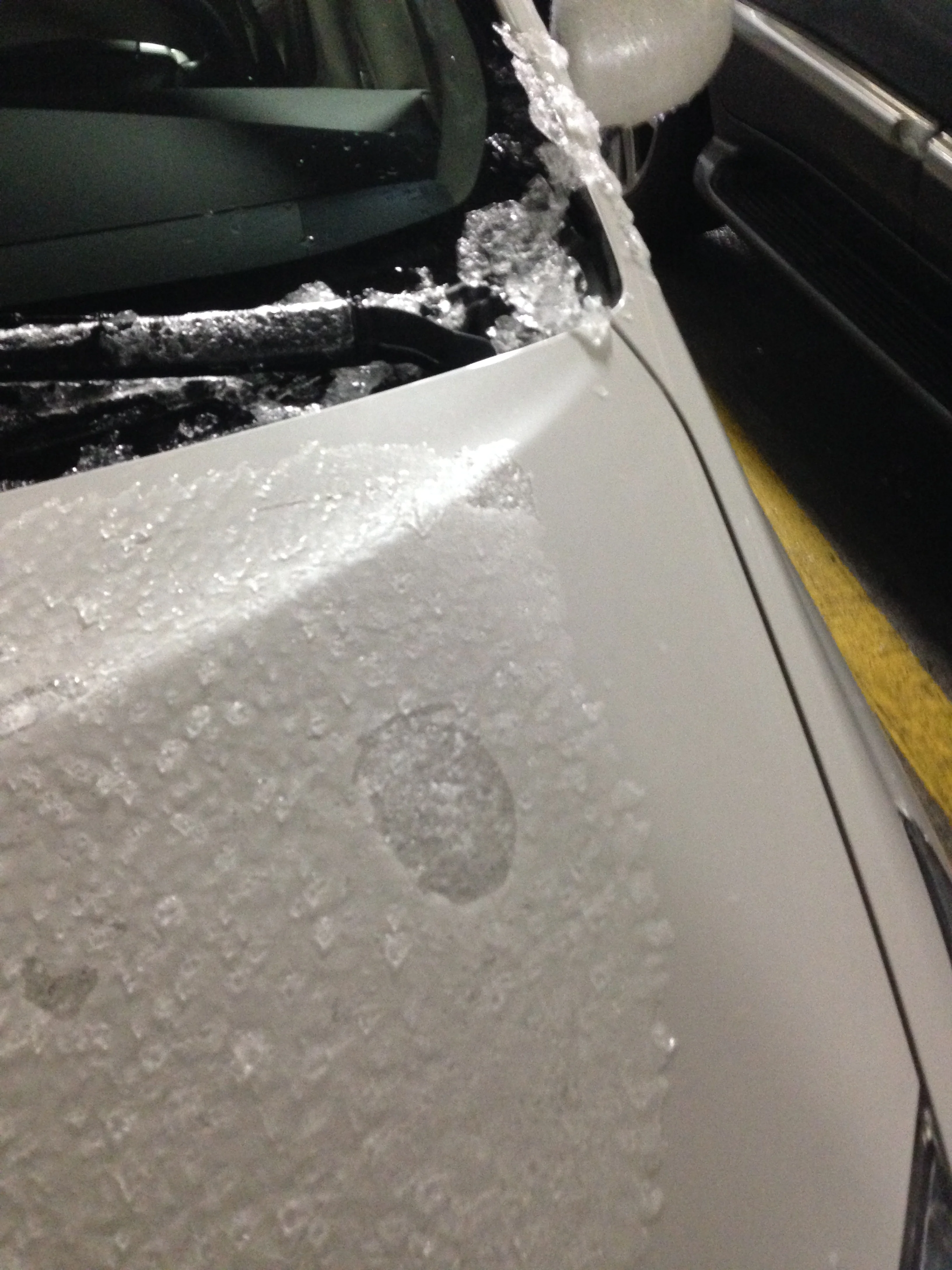 Then, we exhibited excellent adult restraint, and decided to leave early, so we could go get some food, before I brought him into DC for his train home. Good thing we did! When we got outside to my car, we found it was covered in ice.