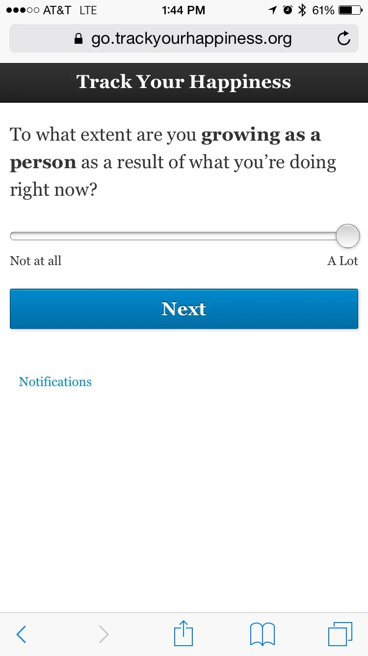 During the talk, I got a text from the Happiness folks, and they asked me "To what extent are you growing as a person as a result of what you're doing right now?"