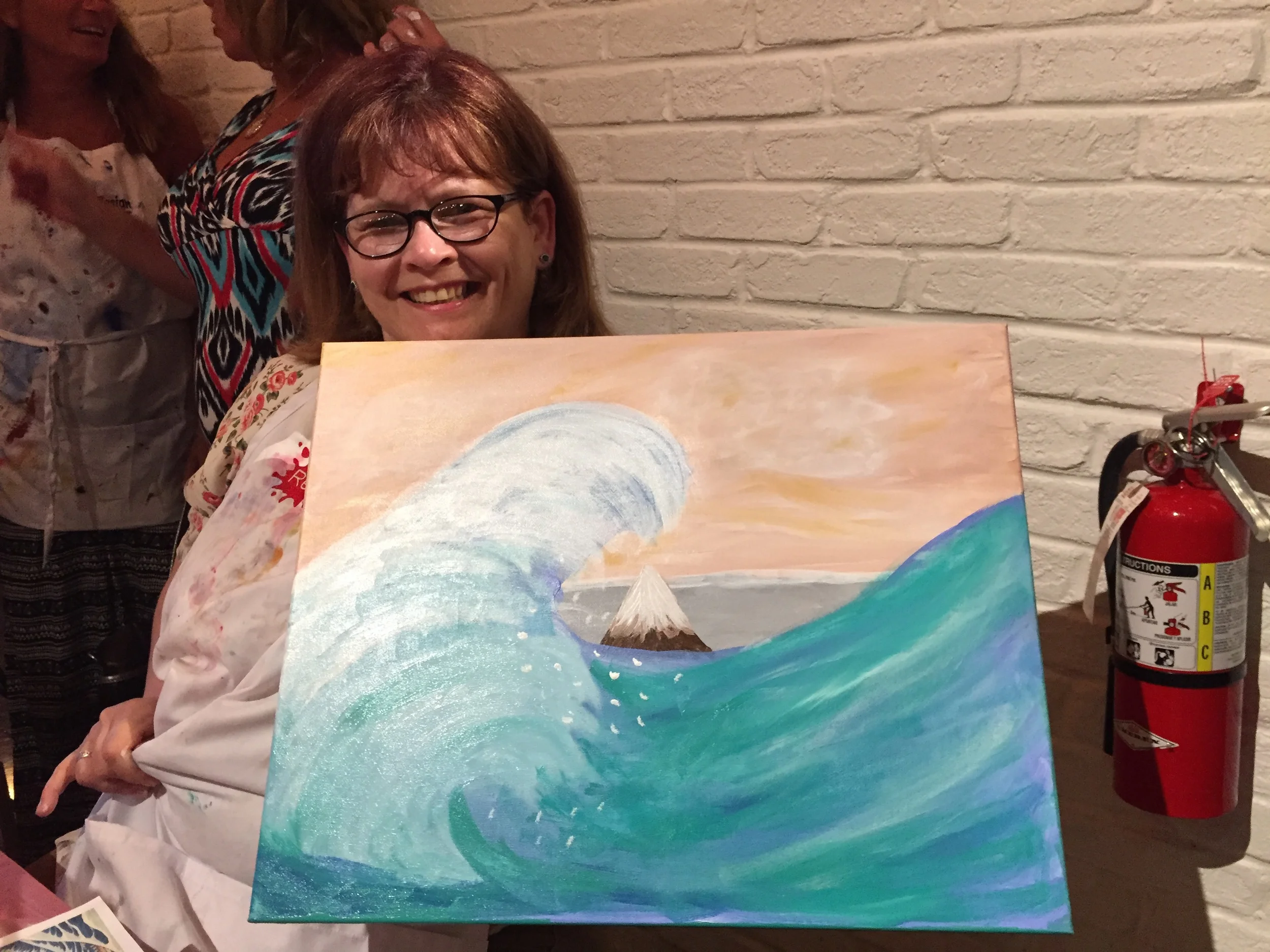 What made this particularly special for me was that Missy picked this particular class on this particular night because we would be doing The Great Wave off Kanagawa by Katsushika Hokusai! It is my all time favorite painting.
