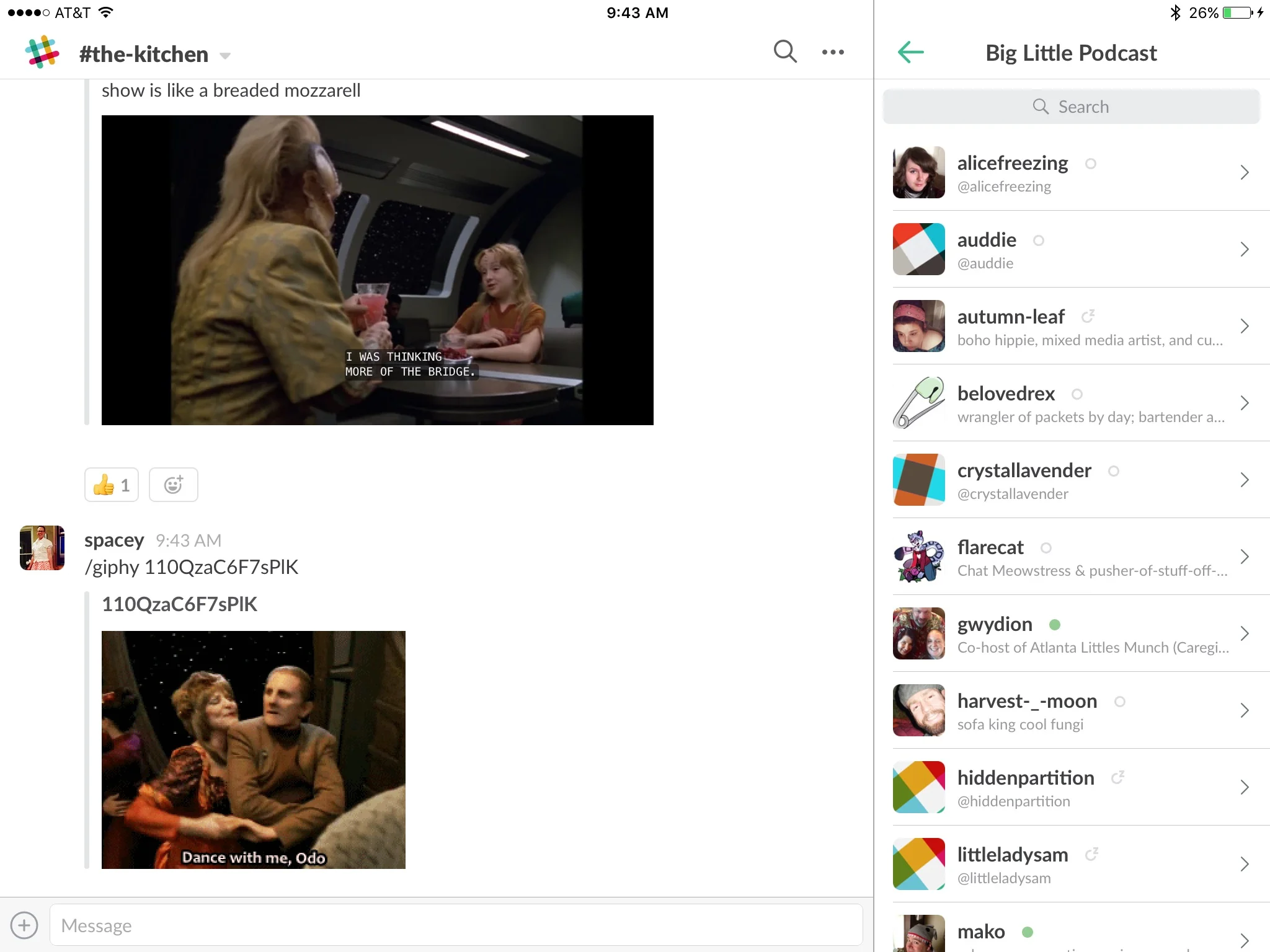 Not that long ago, Spacey and I started biglittlepodcast.slack.com, a private sort of chatroom system for the podcast.