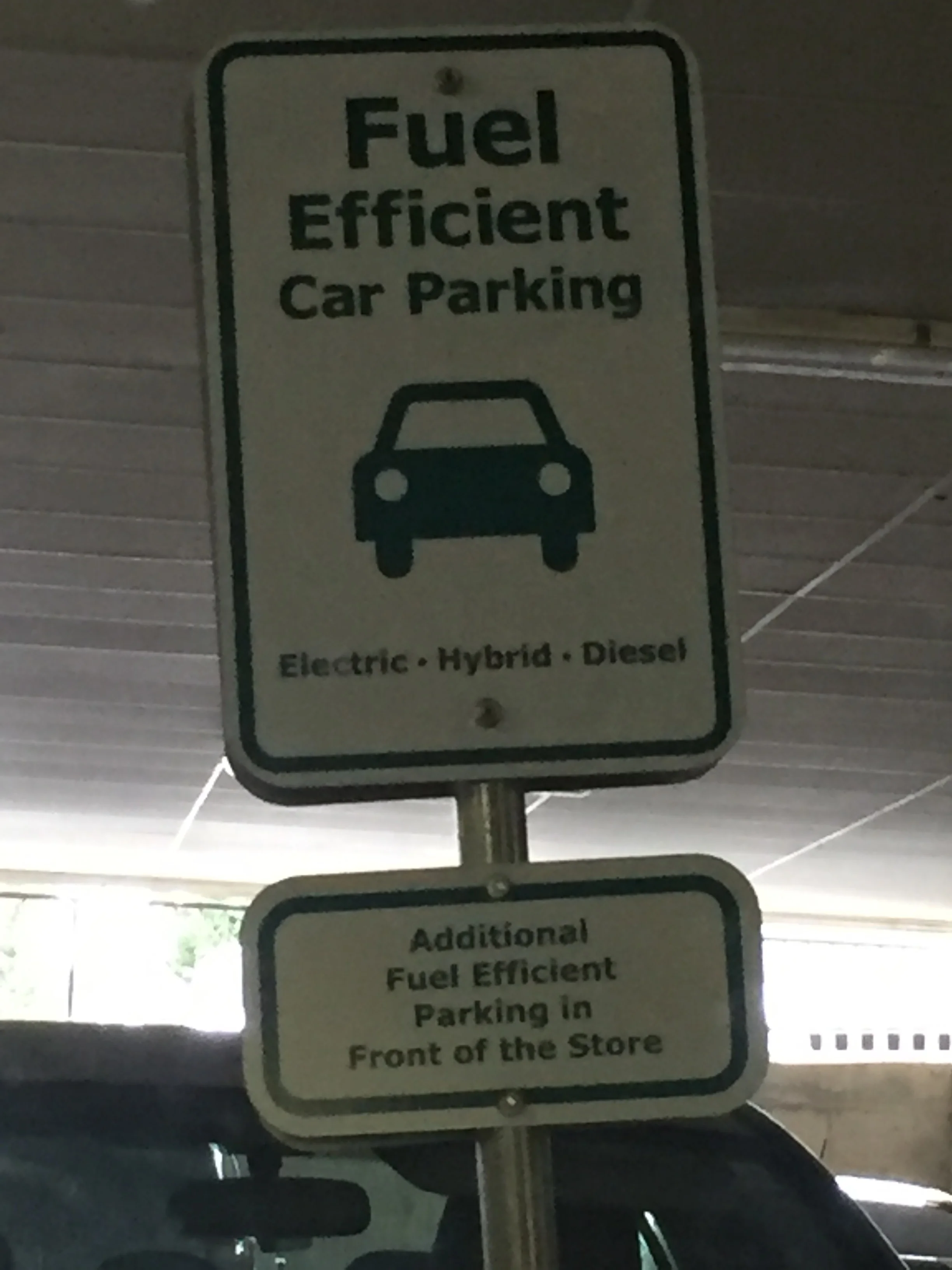 That was when I felt the current of life's river turn with me. (Or maybe just stopped obsessing about what a stressful day I was having, same difference, whatevs!) As we came around a corner, me and my stress-tail, I saw a parking spot only I could take - because it was reserved for hybrid cars like mine.