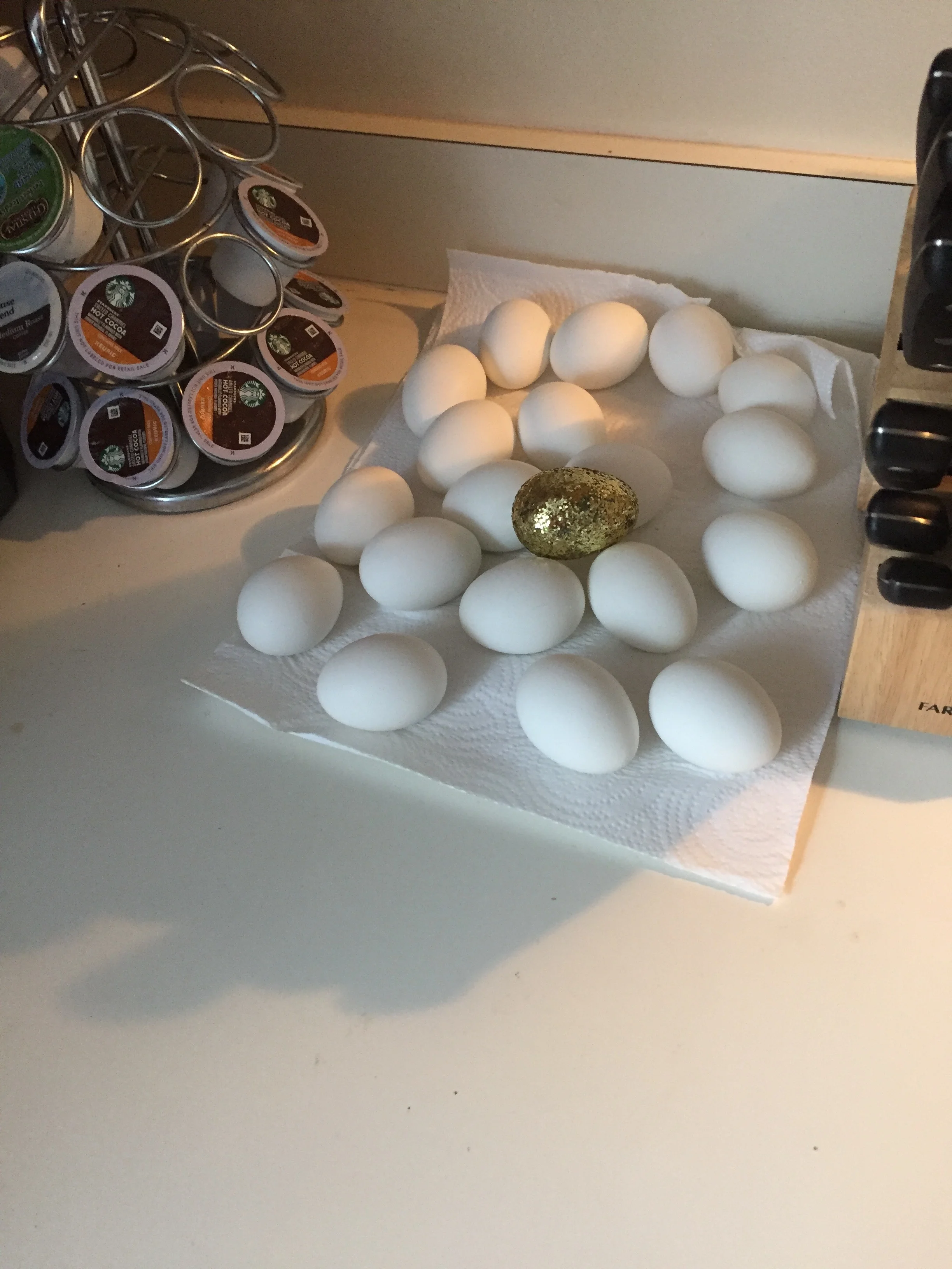 That whole we-can-solve-puzzles-thing totally came back as an awesome "this is who we are" moment on Sunday morning, when the kids woke up, came downstairs, found their baskets and then the first sparkly egg. S., the youngest cracked open the egg, saw a coded message and said, "Oh this is just like the escape room. We can totally do this."