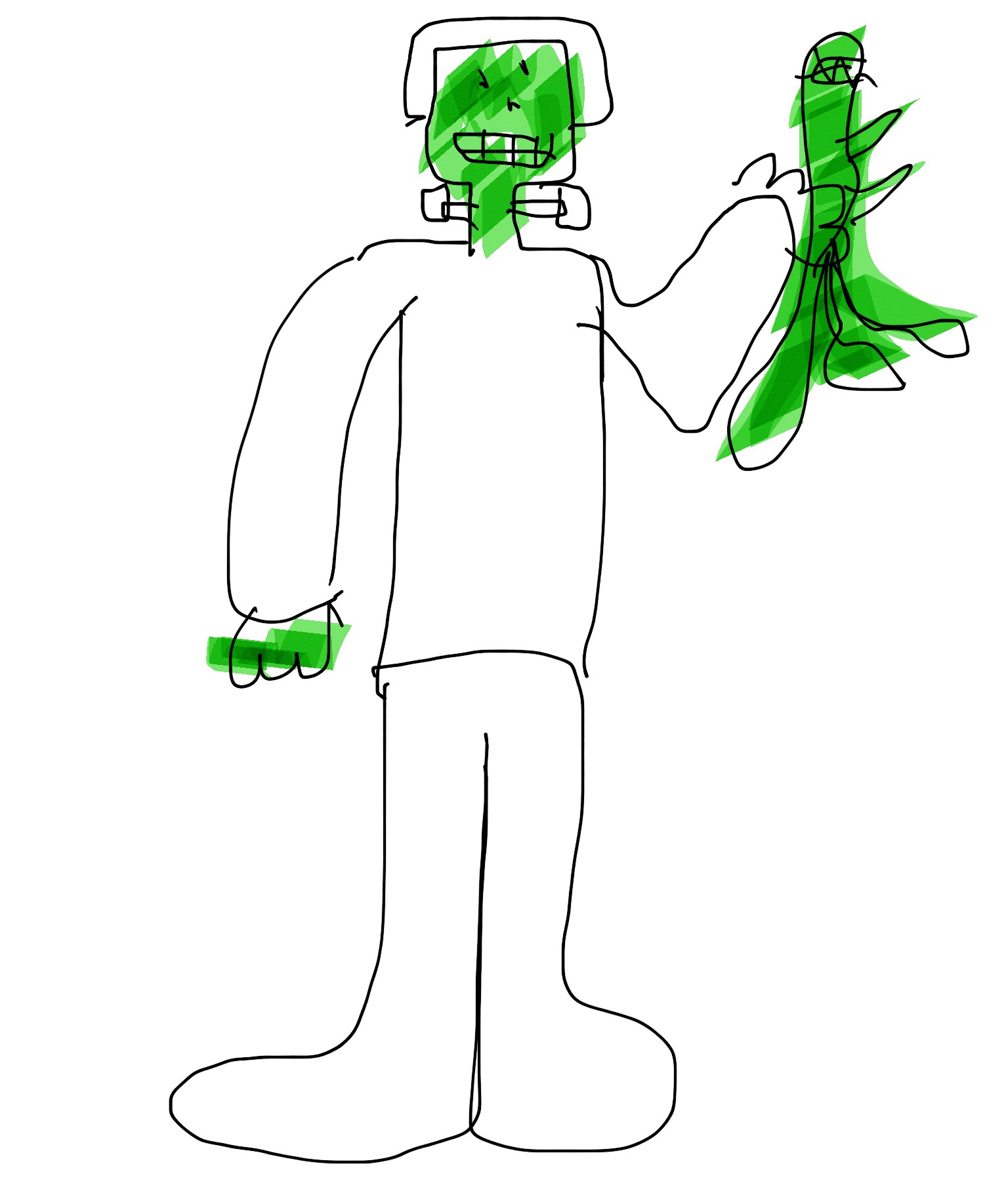 So, Mako-kun got busy drawing a picture of what supertotalmonsterdinosaur looks like, so she could see it.