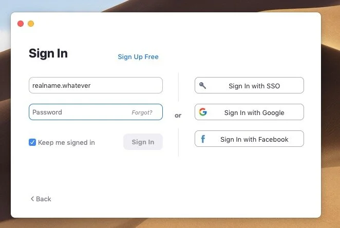 We enable the “Waiting Room” option for meetings. The host has to let you in. This is so we can make sure you aren’t displaying your legal name. We make sure the Waiting Room options make that clear.